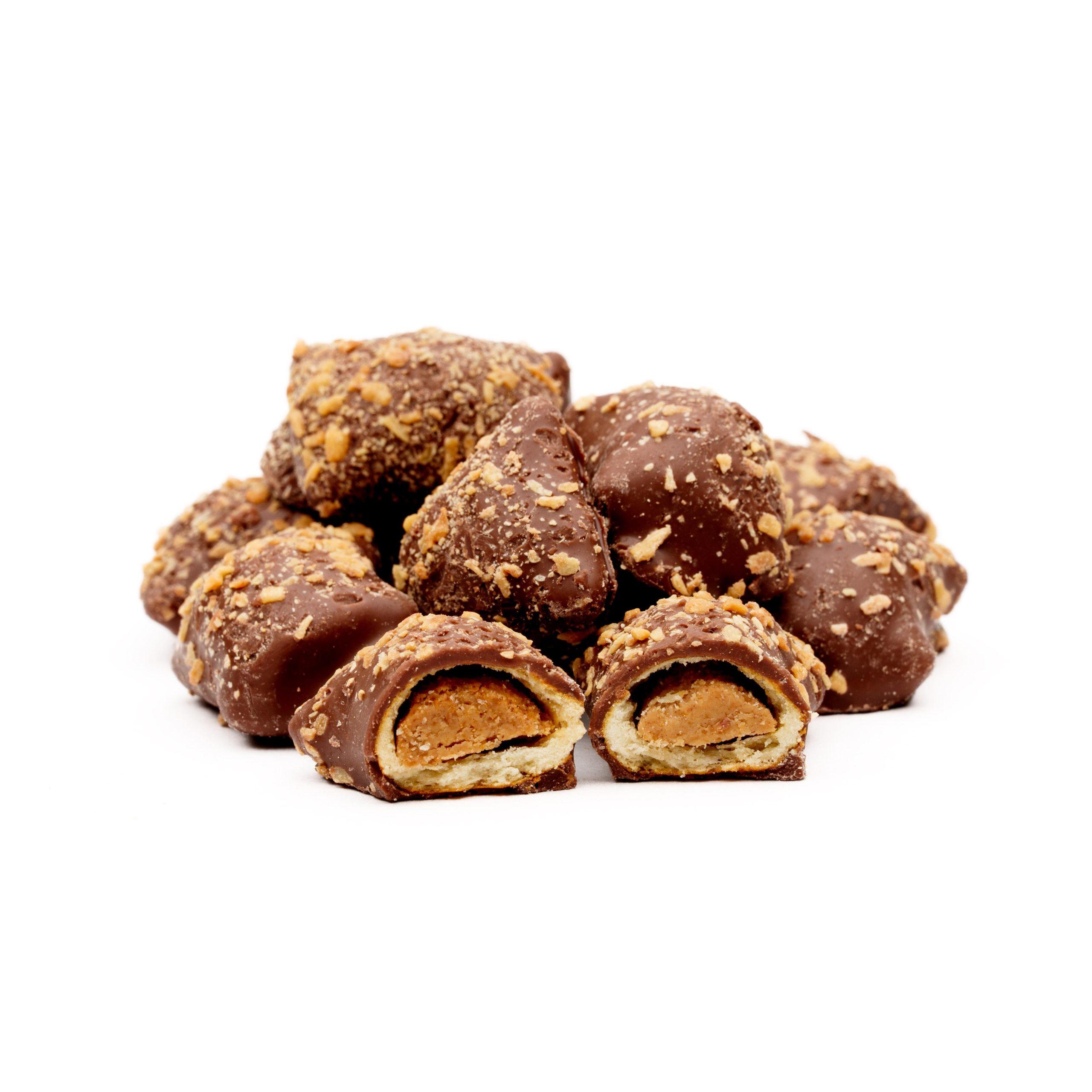 Straight from the trail (well… almost)! Crunchy peanut butter pretzels dunked in rich milk chocolate and topped with nutty toasted coconut. They might look like Moose Nuggets, but they taste like pure Alaskan gold.