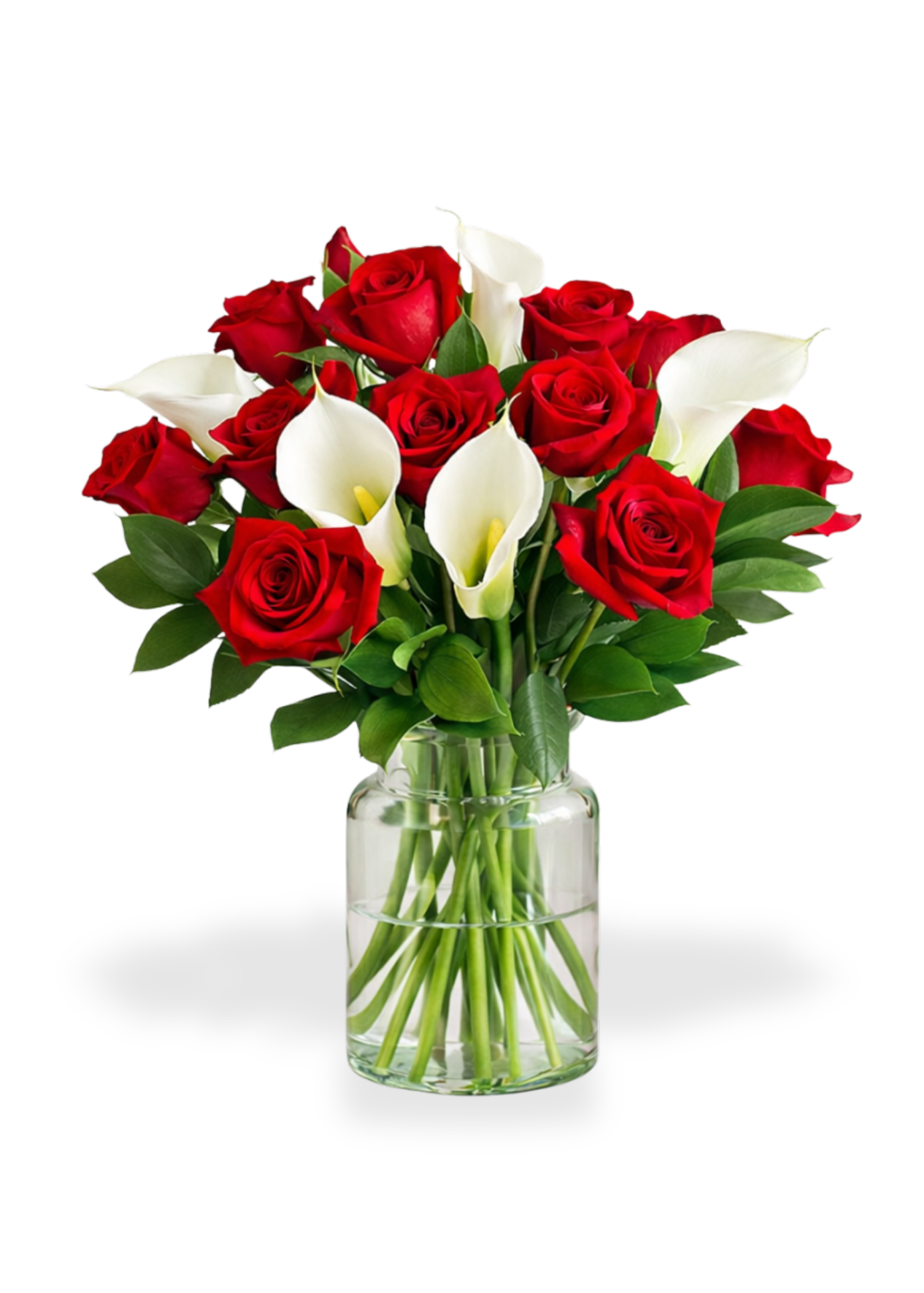 A striking blend of crimson roses and creamy calla lilies, arranged with lush greenery for a timeless expression of love. Designed to impress, this bouquet brings classic romance into a modern presentation — perfect for gifting, celebrating, or simply making someone feel adored.